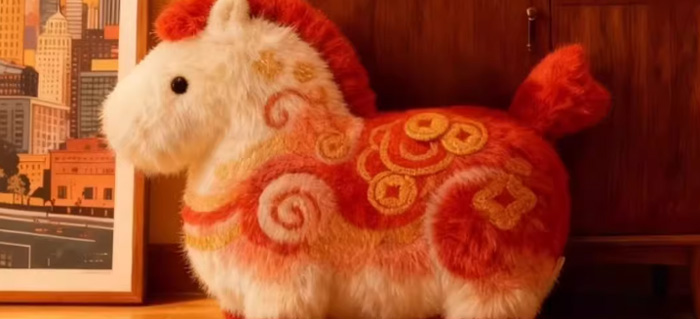 一眼就被这小家伙吸引住了!它造型独特,像一匹蓄势待发的小马,浑身散发着喜庆的红黄色光芒,身上还绣着精致的铜钱图案,寓意着财源滚滚、好运连连。这不仅仅是一个抱枕,更像是一个带来好运的小使者,让人爱不释手。