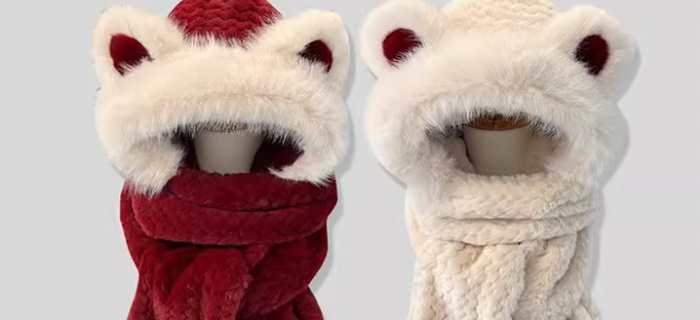 💖而且,这款一体帽的细节设计也超级贴心!耳朵部分的小熊造型,不仅可爱到爆炸,还能很好地修饰脸型;围巾部分的长度适中,既可以围得严严实实,也可以随意地搭在肩上,增添一份慵懒的风情;手套部分则采用了防滑设计,让你在拿东西、玩手机时都能稳稳当当的。这样的设计,怎能不让人爱不释手呢?💕