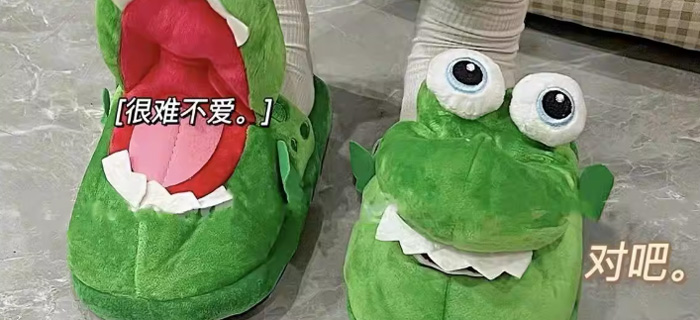 第一次看到这双拖鞋的时候,我就被它那夸张又可爱的设计给吸引住了。整个拖鞋做成了一只活灵活现的绿色鳄鱼造型,张着大大的嘴巴,露出洁白的“牙齿”,还有那圆溜溜的大眼睛,仿佛在说:“快来踩我呀!”最有趣的是,这双拖鞋的嘴巴是会动的!只要你轻轻一踩脚跟,鳄鱼的嘴巴就会应声张开,仿佛在和你互动一样,简直不要太有趣!