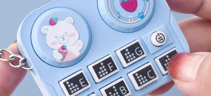 但真正让我惊喜的,是它的“内涵”。这哪是个普通的钥匙扣啊,分明就是一个迷你打碟机!上面有节奏按键,还有各种音效键,按压就能发出不同的动感音乐和音效。每次按压,都像是在操控一场小型音乐派对,那种感觉,简直太酷炫了!
