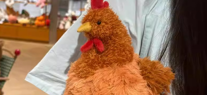 第一次见到它,我就被那憨态可掬的模样逗乐了。它浑身是暖棕色的绒毛,摸起来软乎乎的,就像在抚摸一朵温暖的云朵,超级治愈。那红色的鸡冠和肉垂,鲜艳又逼真,仿佛刚从鸡窝里趾高气扬地走出来。圆溜溜的眼睛透着一股机灵劲儿,黄色的鸡爪也做得十分精致,整体造型简直萌翻了!