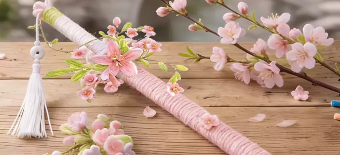 刚拆开材料包我就被萌化了!粉白渐变的扭扭棒像沾了晨露的桃花枝,软糯的质感却能弯折成剑柄的弧度,搭配同色系流苏和立体桃花配件,每片花瓣都精致到能看见“花蕊”!🎀手残党也别怕,材料包附赠超详细教程视频,我这种手工小白跟着扭了半小时,居然做出了能“斩桃花”的仙女剑!(别问,问就是剑出鞘必遇良缘😉)