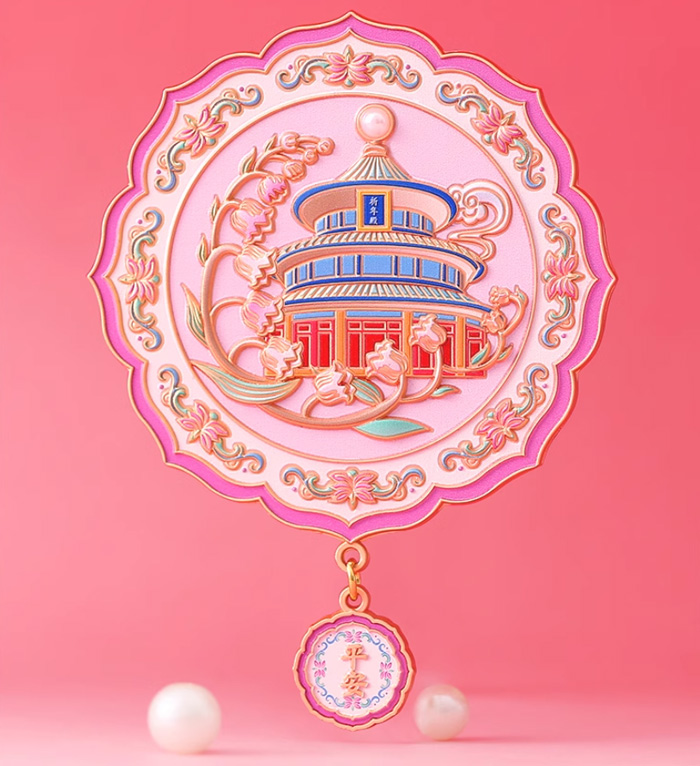 这款小镜子以“北京印象”为主题,设计精美,色彩鲜艳。镜子的边框采用了传统的汉服元素,与四只穿着汉服的小动物图案相呼应,整体给人一种古色古香的感觉。小动物们似乎在庆祝某个节日或活动,画面充满了喜庆和欢乐的氛围。