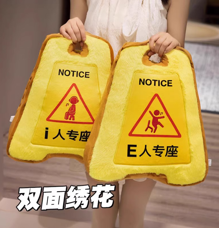 这款靠枕摆件的设计灵感来源于警示牌,将原本严肃的警示元素与舒适的靠枕相结合,打造出既实用又有趣的办公小物。靠枕上印有不同的警示文字,如“i人专属”、“仙女宝座”、“注意”等,每个都充满了幽默感和个性。其中,“i人专属”可能代表着内向、喜欢独处的人群,“仙女宝座”则无疑是女性同事们的最爱。